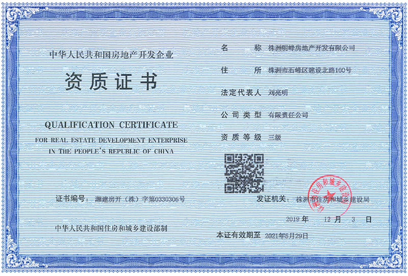明峰房產(chǎn)三級(jí)資質(zhì)證書