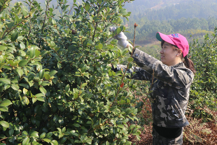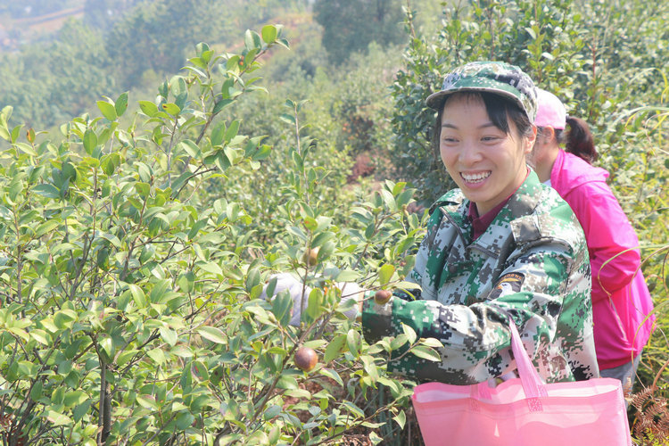 在這次采摘活動總負(fù)責(zé)人劉獻(xiàn)忠的帶領(lǐng)和安排下,大家有序的從山頂往山下采摘,站在山頂往下看,滿林的油茶樹上掛滿了紅紅的果實(shí),大家陸續(xù)進(jìn)入茶山開始了摘茶籽的勞動。