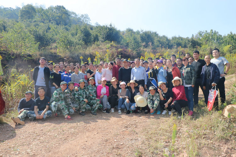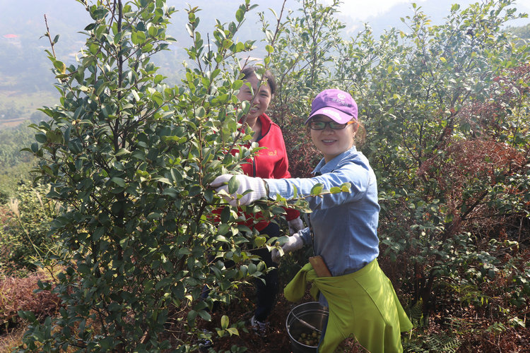 終于采摘完畢,大家在油茶林山下合影留念,董事長也開心的逗大家:各位辛苦了,明年的今天我們再相會。大家歡聲笑語一片,臉上都洋溢著豐收的喜悅。