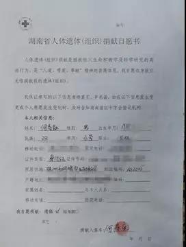 何老與紅十字會(huì)簽訂的遺體捐贈(zèng)書