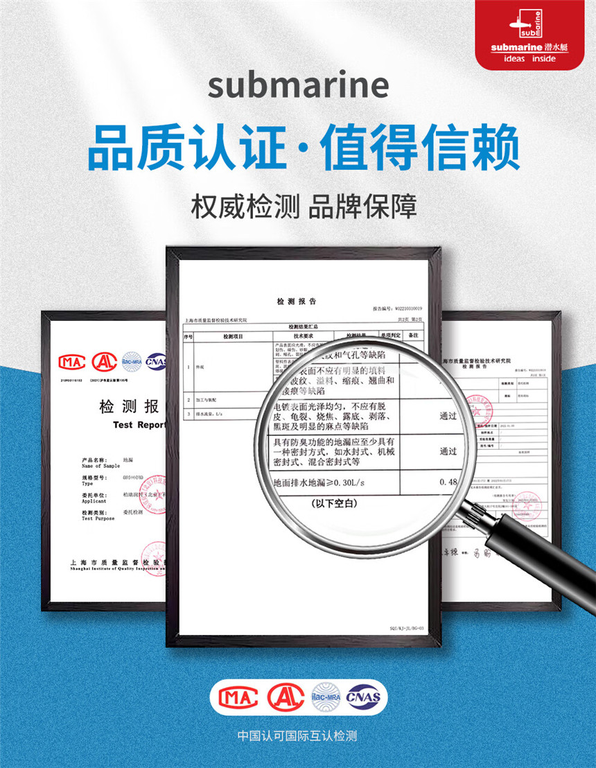 submarine潛水艇一直致力于新型地漏系統(tǒng)解決方案及相關衛(wèi)浴產(chǎn)品的研發(fā)設計制造和推廣而倍受推崇,是專業(yè)的地漏系統(tǒng)供應商。公司了解用戶對地漏的需求,開發(fā)了功能獨特的防臭系列地漏,并結合時尚元素開發(fā)各具特色面板樣式,使地漏產(chǎn)品成為家庭裝修中一個重要的亮點。